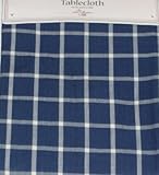 This pretty tablecloth has an great look. It has a casual windowpane plaid pattern in shades of navy blue and white.